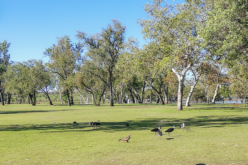 Exceptionnellement, nous avons mangé dans le parc de la ville. Manger assis sur la pelouse verte nous parut si étrange, cela faisait longtemps que nous n’en avions pas vu une. Il y avait de nombreux oiseaux, dont des milans. C’était super sympa !