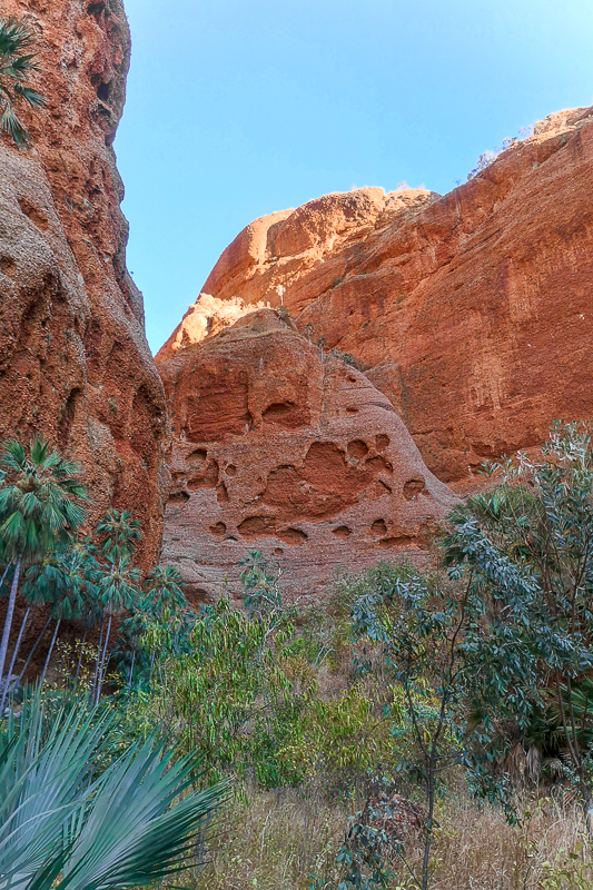 Cet ensemble de dômes se visite au nord avec Echidna Chasm et Mini Palm Gorge, par exemple, et au sud avec le site de Piccaninny. Nous avions choisi de faire la partie nord en arrivant et de garder le site de Piccaninny pour le lendemain, car nous souhaitions y passer la journée.